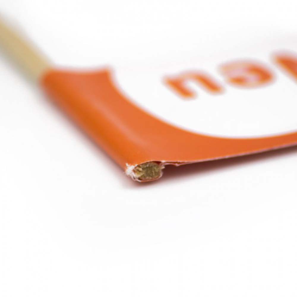 Beidseitiger 4-farbiger-Digitaldruck der Zahnstocher-Fähnchen in Standardqualität als Käsepicker mit Ihrem Motiv oder Logo. 135 g/m² weißes MC Glanzpapier auf einem ca. 70 mm langen Holzspieß aufeinander geklebt.